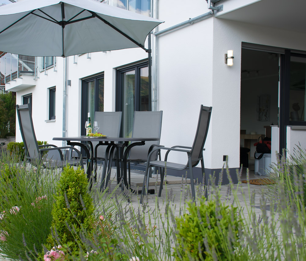 Terrasse inkl. Bestuhlung und Sonenschirm