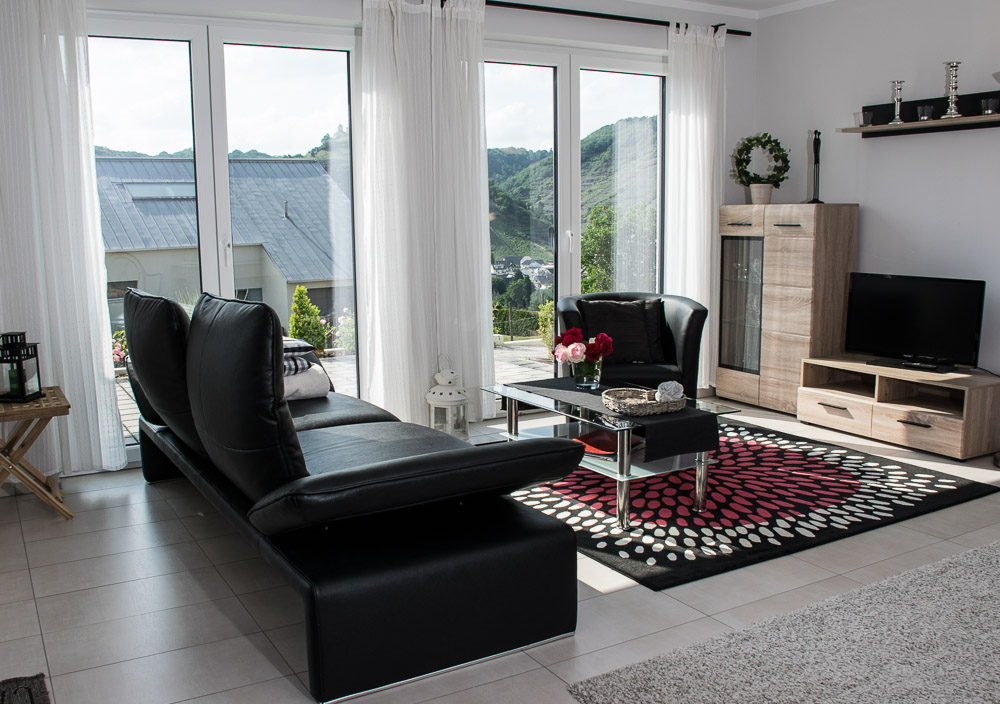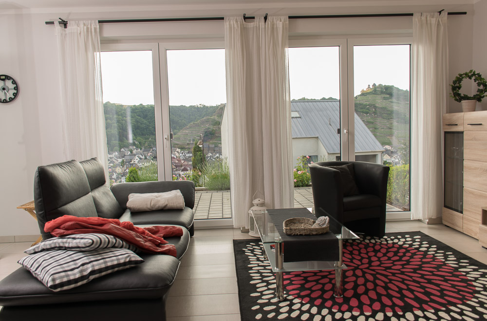Wohnzimmeraussicht mit direktem Blick auf die malerische Mosel